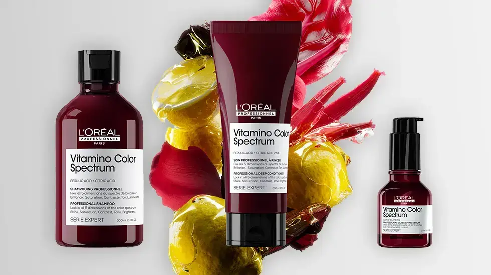 Hvor spændende, at du er interesseret i Vitamino Color Spectrum fra L'Oréal Professionnel! På dag 1 af din farvebehandling reflekterer håret fem dimensioner af farvespektret. Men med tiden kan disse ændre sig, hvilket kan føre til en udvasket farve – nogle gange med uønskede skiftninger. Derfor har vi udviklet Vitamino Color Spectrum, en professionel hårplejeserie med patenteret teknologi, beriget med Ferulsyre og Citronsyre, som hjælper med at låse farvepigmenterne inde i hårfiberen. Vi glæder os til at høre, hvad du synes!